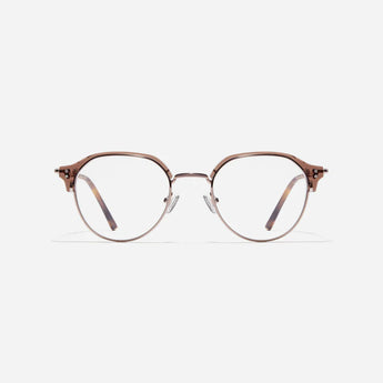 Alex P+ are polygonal-shaped gold-rimmed eyeglasses crafted to perfection. The frame, constructed from bioplastic and titanium, seamlessly merges exceptional durability with an ultra-lightweight build, while stylish nose bridge lining details enhance the overall design. The B-titanium temples deliver a lightweight and comfortable fit, guaranteeing prolonged wear without any discomfort.