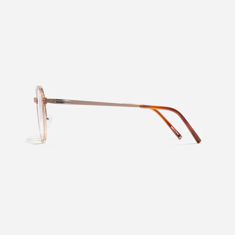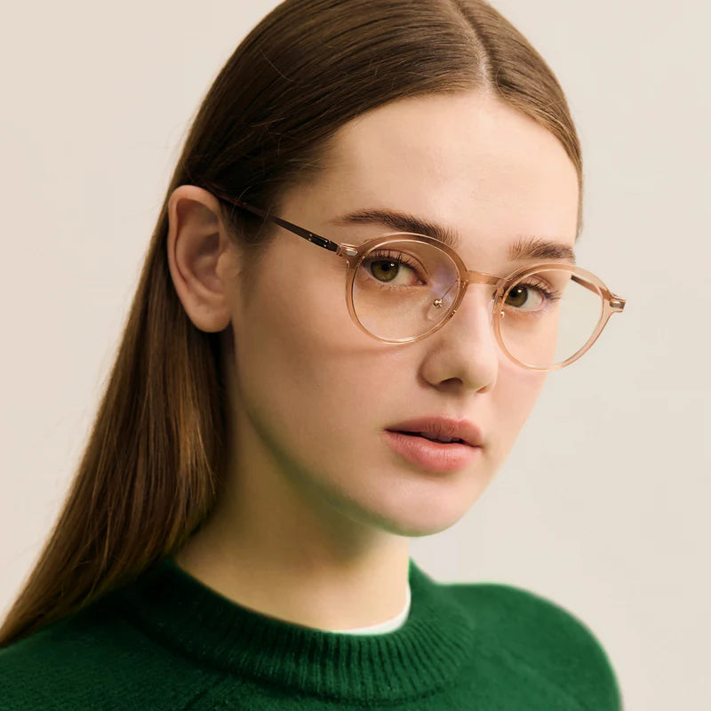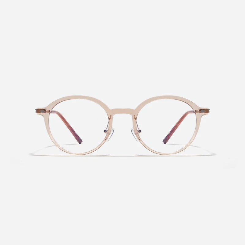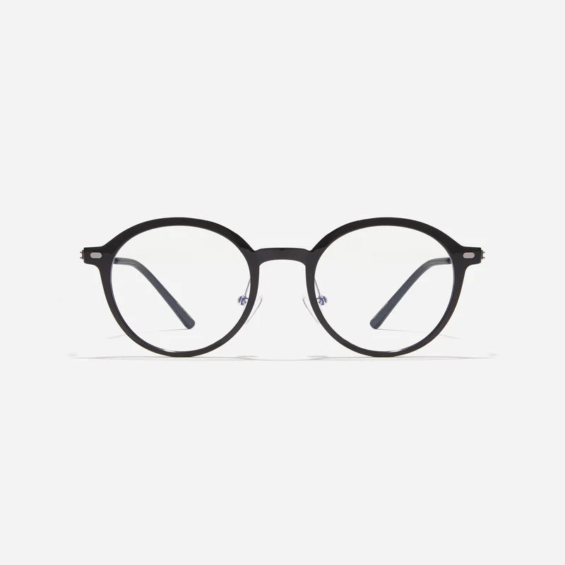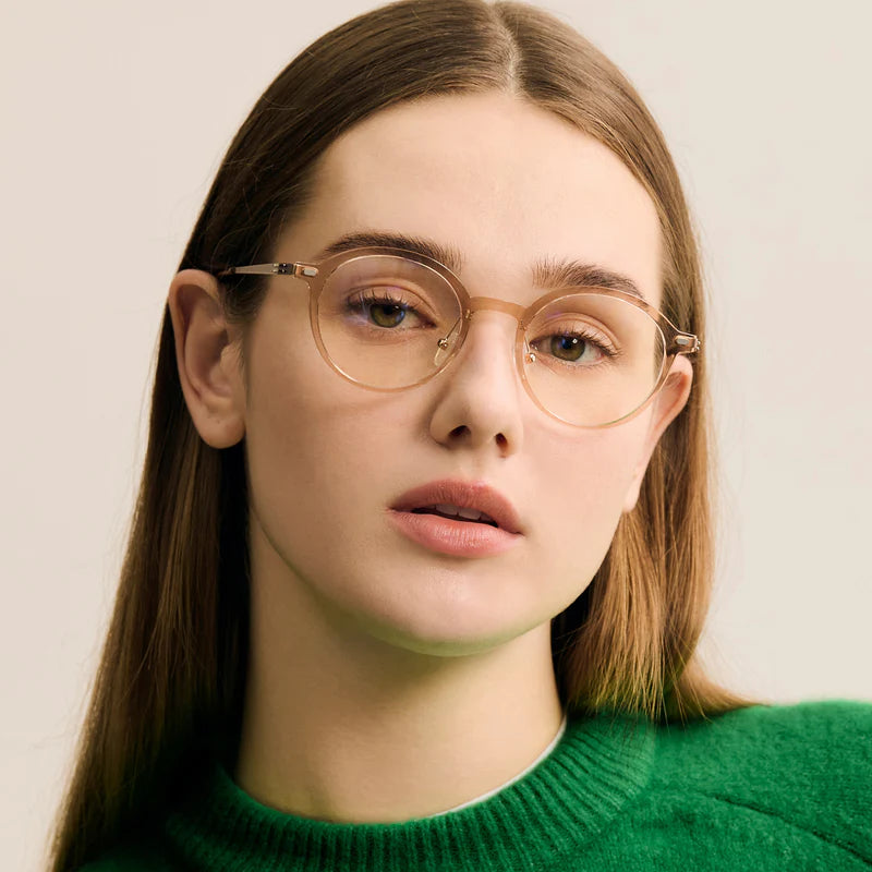 Air 2 R are round-shaped combination eyeglasses from CARIN's 'Feather Fit' line. Their combination frame seamlessly blends bio-plastic and titanium, utilizing advanced injection molding technology, often seen in the manufacturing of cell phones and watches. Additionally, Air 2 R integrate a dual-lining screwless hinge, ensuring a consistently comfortable fit.