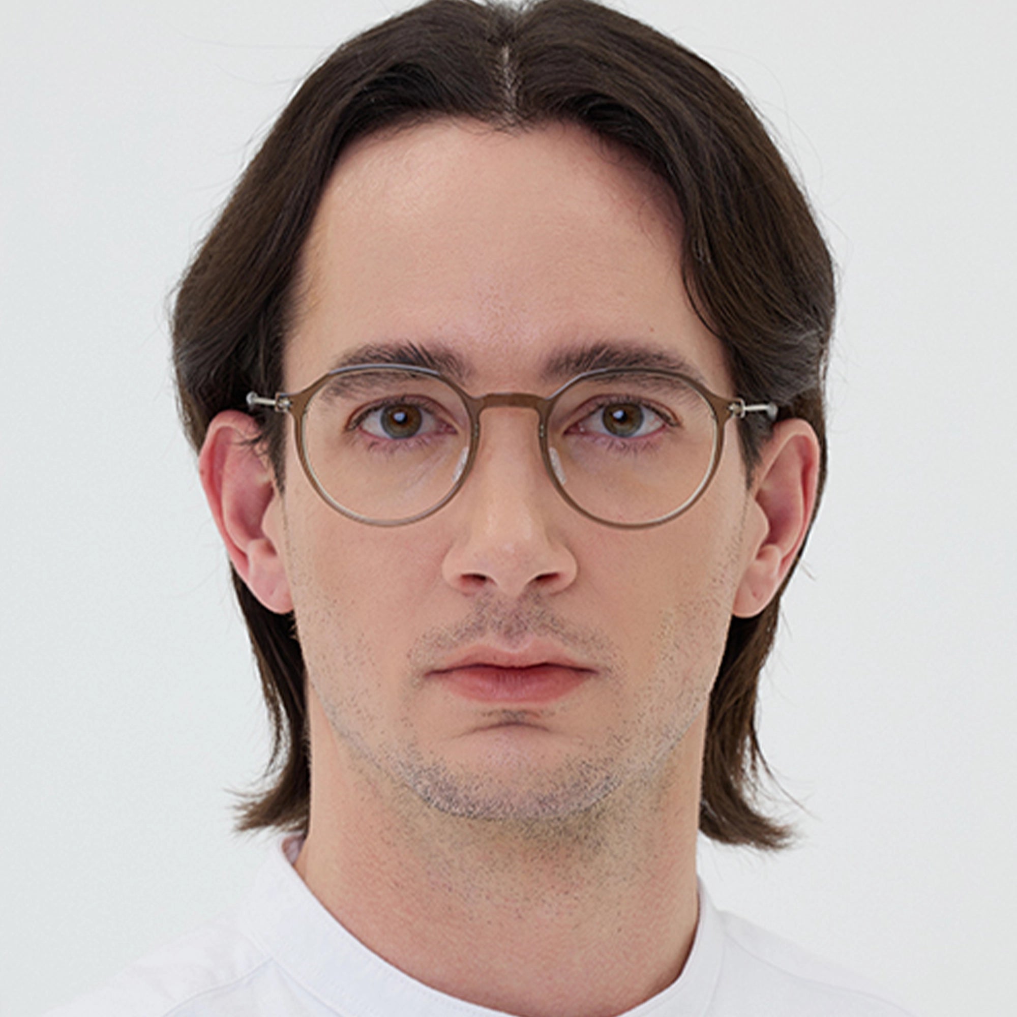 This frame is a popular representation of panto-type glasses. This is an attractive optical model with a straight outline of the roof rim that provides a light touch in contrast to the gently round lens shape.