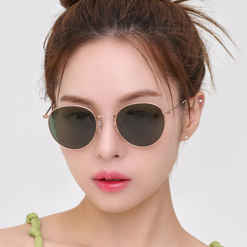 Anna N is a renewed version of CARIN’s best product, a round-shaped metal sunglasses. They feature a simple round lining frame and are made entirely of titanium, from the frame to the temples, ensuring both lightweight and durability. The design incorporates a sense of aesthetics by utilizing lens colors and offers a soft and natural style with a peach-shaded gold-based color variation.